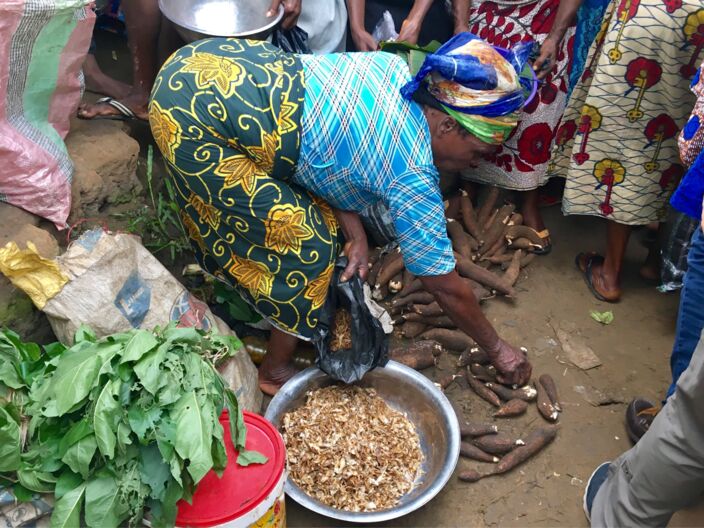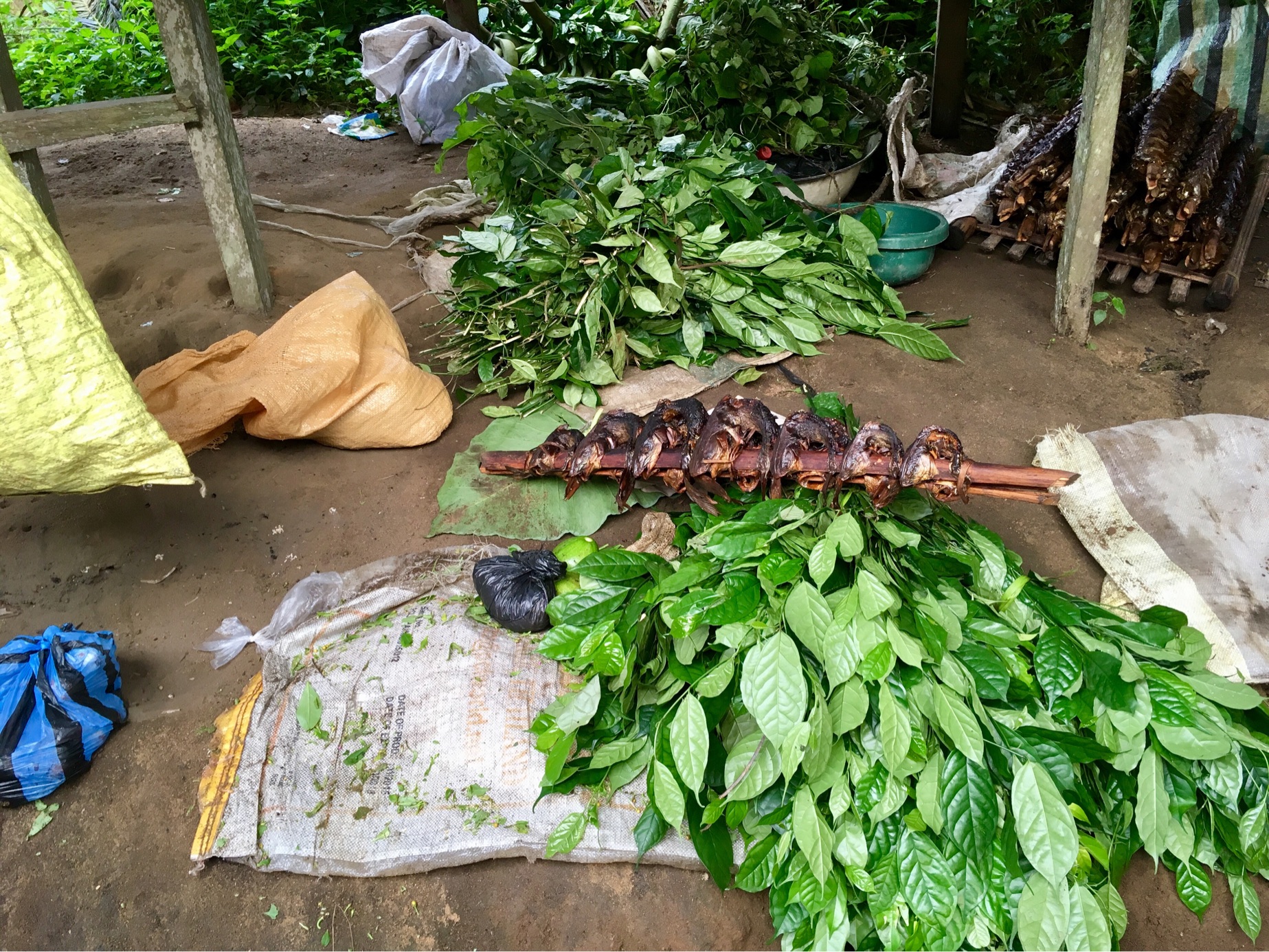 Samstag, 09.09.2017 - Frühmorgens Besuch eines sehr lebhaften Tauschmarktes im nahen, hier nicht mehr intakten Regenwald. Man sieht vor allem Frauen, die vorwiegend Nahrungsmittel handeln. Selten wird mit Bargeld gewechselt. Die Männer halten sich draussen vor den Marktständen, sind mit ihren Töffs und wenigen Autos für den Transport zuständig.