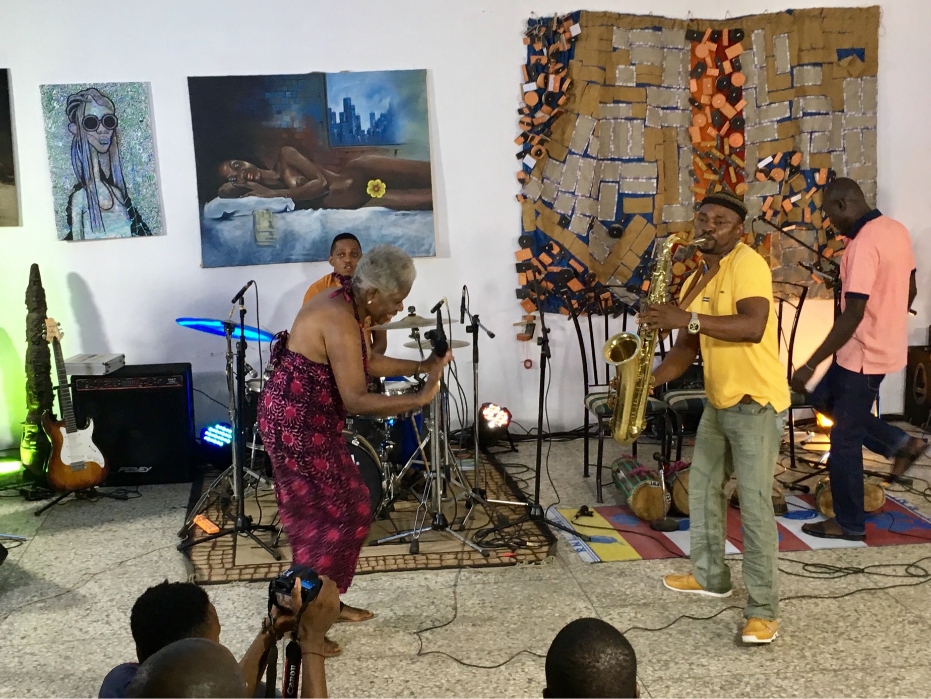 Am Abend die Einladung einer Kollegin von Christine zu einem privaten Treffen in der ersten privaten Kunstgalerie von Calabar. Der Besuch entpuppt sich als ein grossartiges Konzert verschiedener Musikerinnen und Musikern, bei dem wir nicht die einzigen Gäste sind. Ein Forscher berichtet vom Kulturtransfer von Calabar und Umgebung nach Cuba in der Sklavenzeit und von dort zurück in den Cross River State. Es zeigen sich verblüffende Übereinstimmungen von Rhythmen, Gesängen und Tänzen. Die Rhythmus-Gruppe mit verschiedenen Trommeln und Schlaginstrumenten und die Sänger bringen uns diese Musik näher.